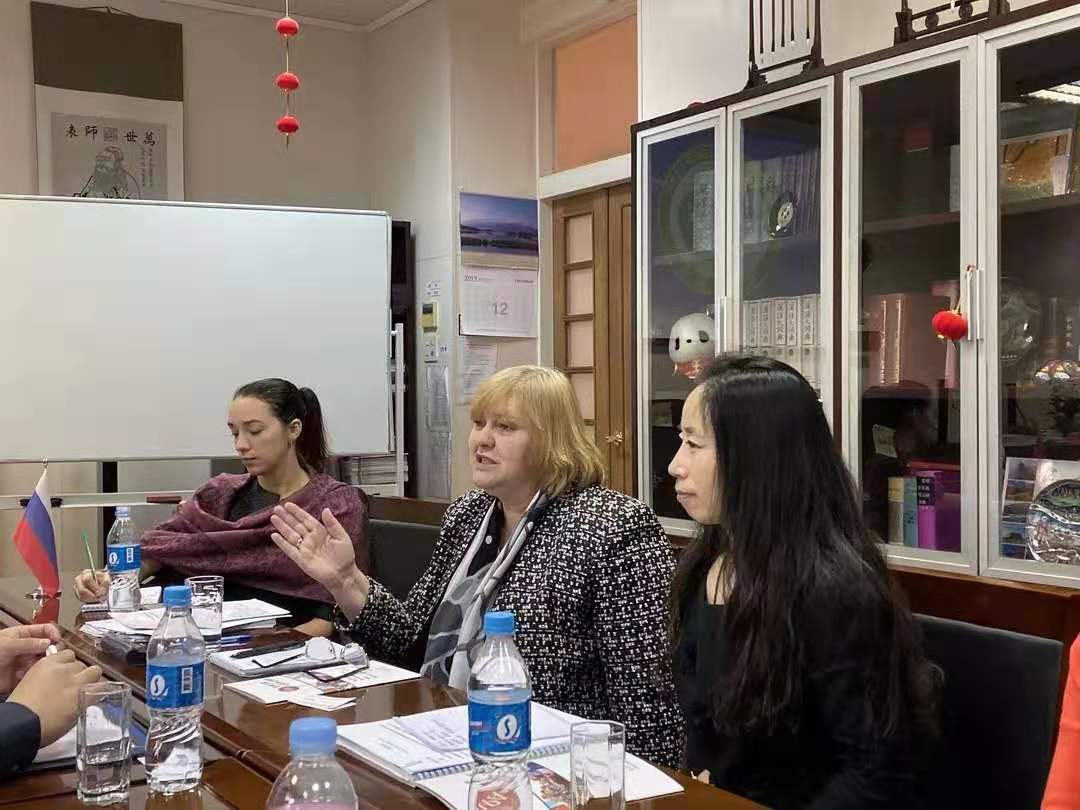 On December 11, delegation of teachers and students from the School of International and Public Affairs of Jilin University went to the Confucius Institute of the Far Eastern Federal University of Russia to conduct the "Investigation on the Construction and Development of Confucius Institutes in Northeast Asia". The purpose of this visit is to understand the construction and development of Confucius Institute and the current situation of Chinese teaching in that region, and lay a foundation for further promotion of Chinese teaching there. Natalia Josephus, deputy dean of the Confucius Institute of Far East Federal University of Russia, and nearly ten faculty members of the Confucius Institute met with representatives of teachers and students and held a discussion.