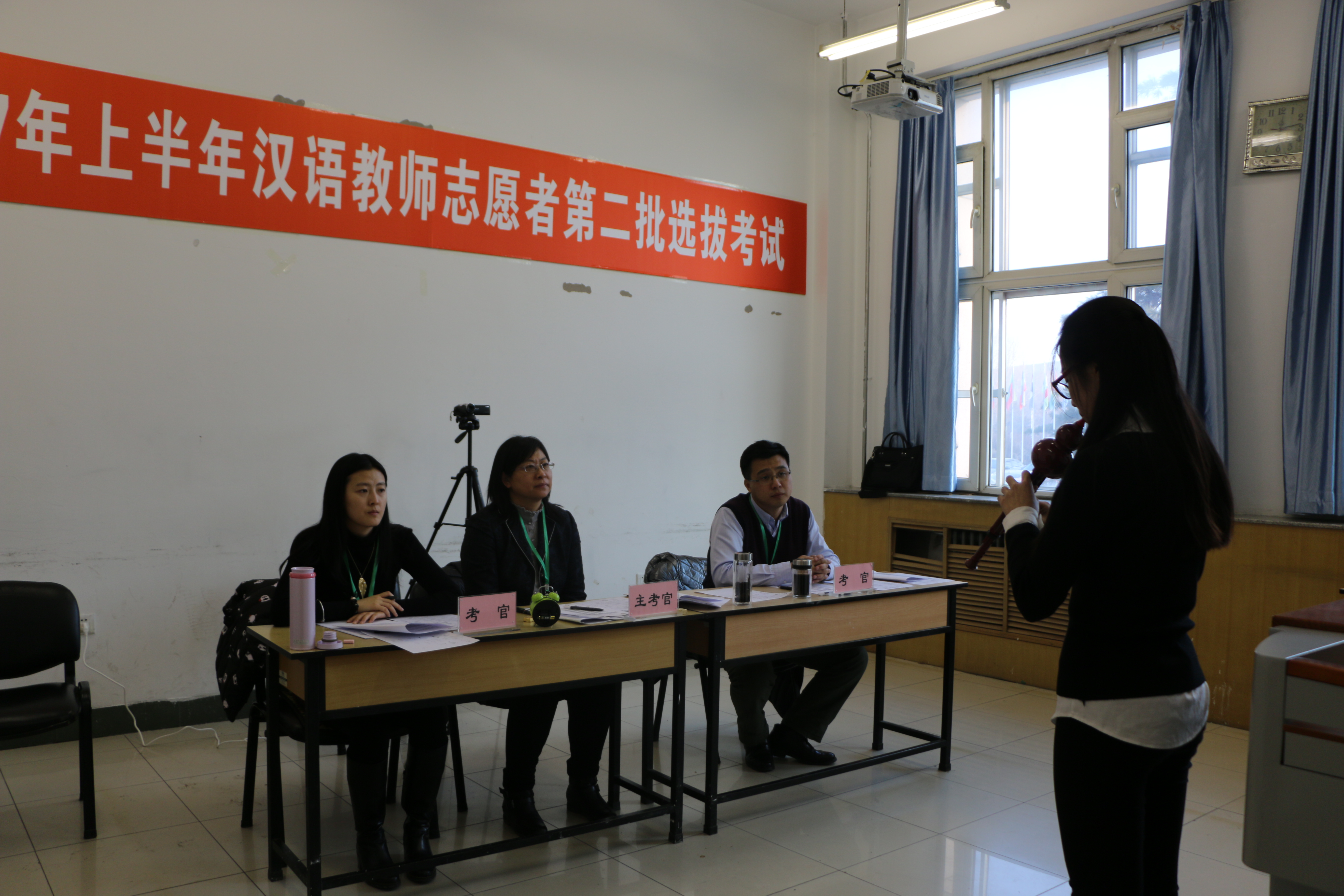 此次考试分为心理笔试、综合能力面试、外语口试三部分,主要对考生的汉语基础知识、汉语教学能力、跨文化交际意识、中国国情与文化、中华才艺等方面进行考察,同时还对外语水平、普通话水平、心理等方面进行了全面的考核。通过此次选拔考试的考生将在接受国家汉办组织的统一培训后,被派往美国、日本、泰国、菲律宾等国家传播中华文化。