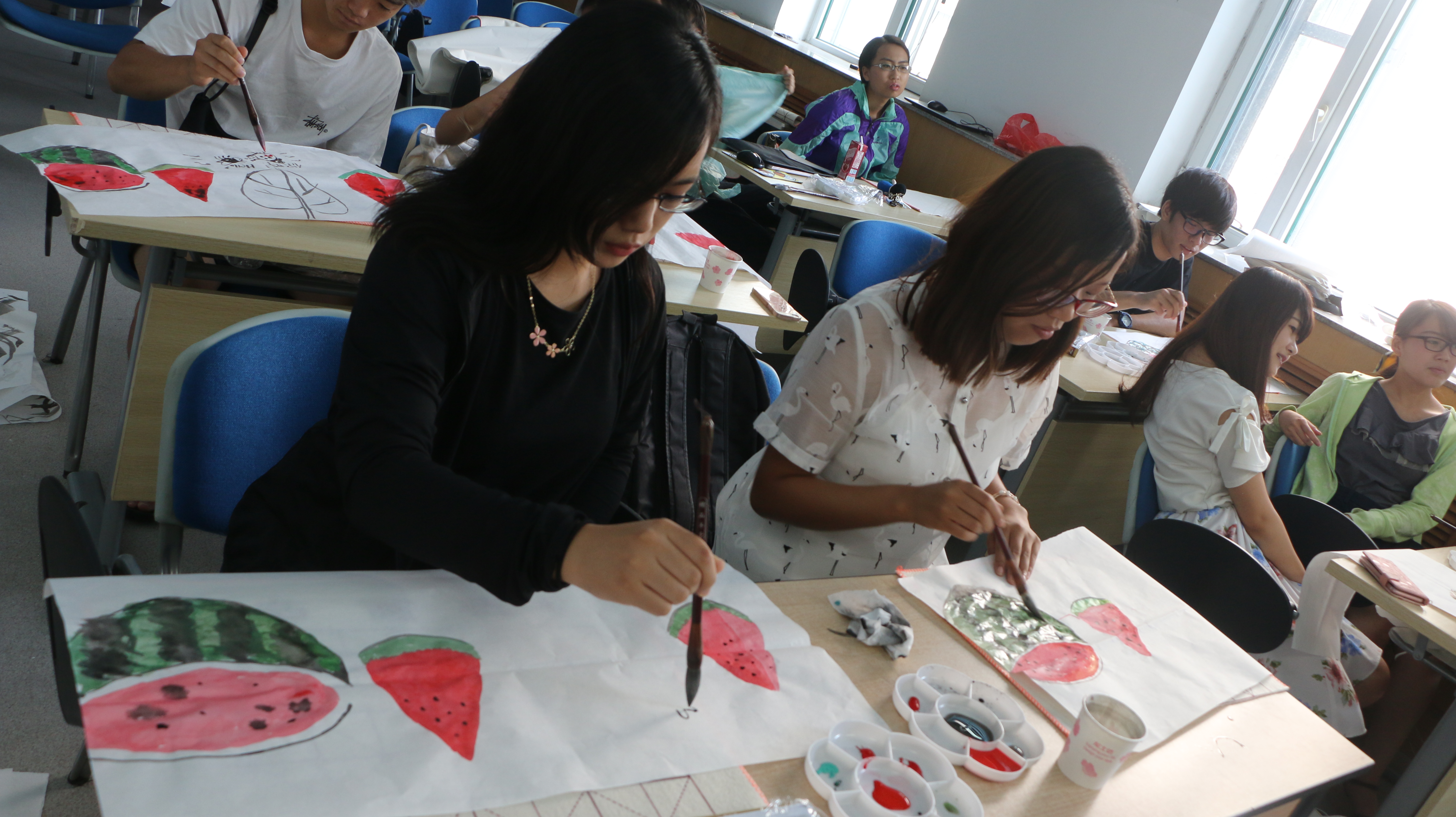 每天下午的课程都与中国传统文化相关,中国传统书法课、国画课、剪纸课还有太极拳等让来自三个国家的学生一起走进传统文化,让同学们意识到了中日韩三国文化的相通之处。