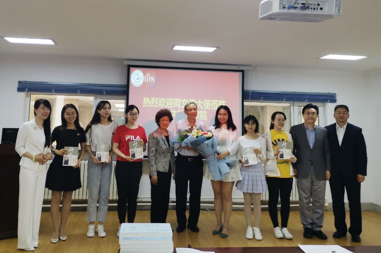 师生进行学术座谈。周大使凭借自己多年的外交工作经验与心得,针对当前世界形势以及国际社会关注的热点问题等进行深入讲解,从世界经济及科技的新发展、地缘政治回归、保守主义抬头、大国关系变革等方面,阐释了对“百年未有之大变局”的理解,并对中美关系与经贸摩擦、南海局势等问题发表了自己的看法。在随后的交流与讨论环节中,周文重先生与日本三级片