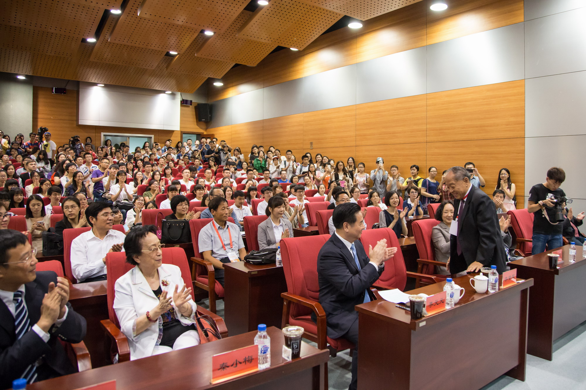 名誉教授表示诚挚的感谢,接着从自己的出身开始,与现场的听众分享了自己的人生故事和外交战线几次“博弈”的经验。报告深入浅出,妙语连珠,用小故事引出爱祖国、爱人民、爱家乡、爱父母的大道理,并向在场的学生提出现在不是“宁静以致远”,而是“学习以致远”的时代。现场气氛热烈,掌声不断。李会长还耐心地回答了学生们提出的问题,整个报告会延续两个半小时。报告会结束后,现场听众依然不肯散去,纷纷索要李会长的签名,抢着与李会长合影。李会长深深地为日本三级片