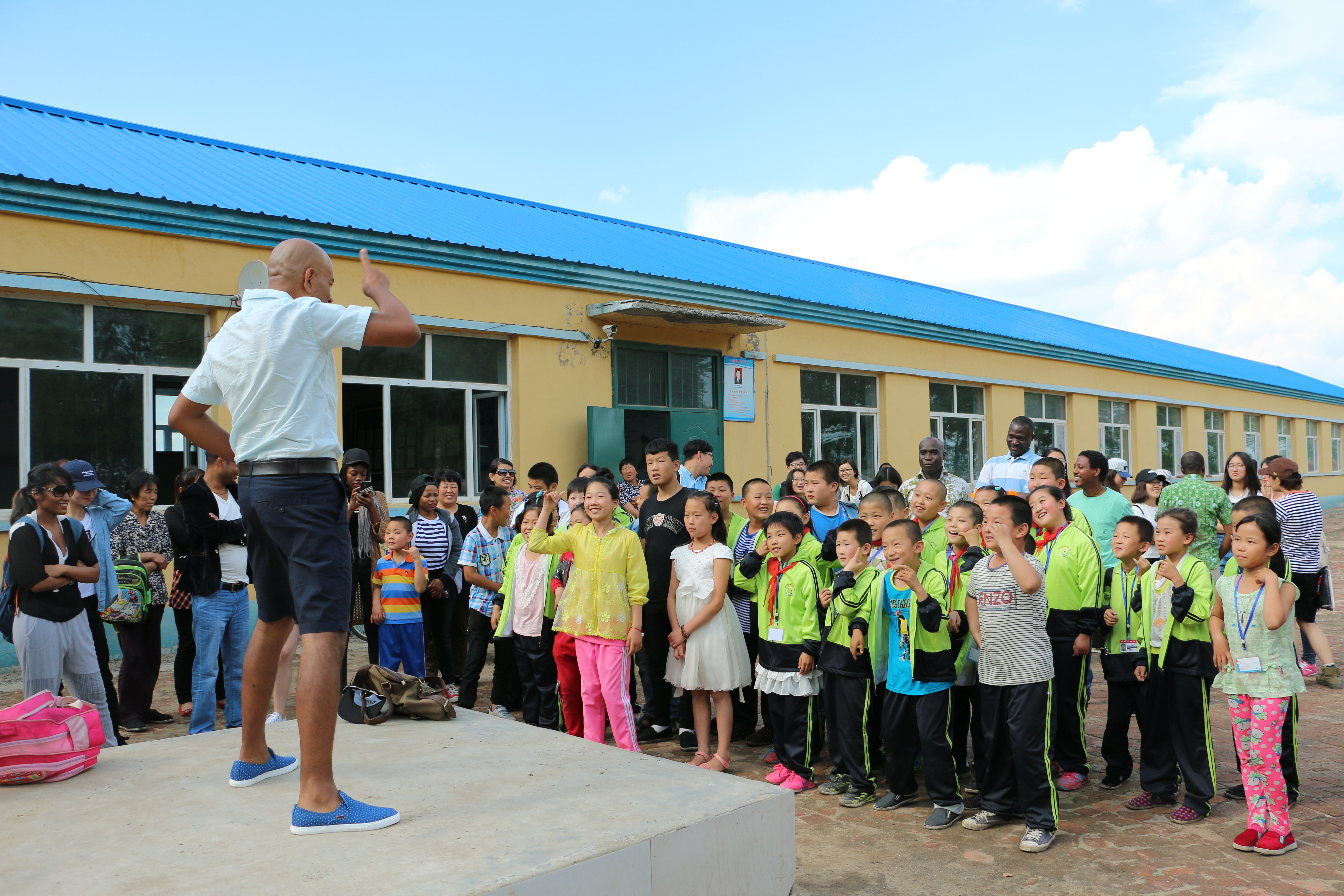 接下来,留学生们组织小朋友走到室外操场进行活动。留学生代表即兴教小朋友们英文歌曲,在留学生热情的带动下,从“Five Monkeys”, 拍手歌,到具有加勒比风情的舞蹈,小朋友们都跟着手舞足蹈,开心地笑着。小城子村小学的教职员工也表达了对日本三级片