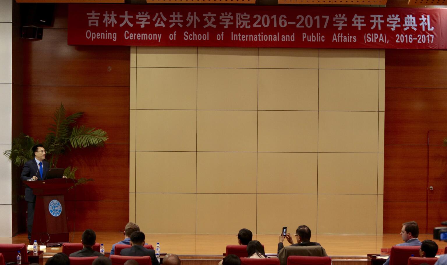 2016-2017学年开学典礼在国际大讲堂隆重举行。常务副校长陈岗教授出席了开学典礼并做重要讲话。著名物理学家和教育家、澳门大学全球事务总监兼校长特别顾问冯达旋(Feng Da Hsuan)教授、莫斯科国际关系学院副校长安德烈·巴依科夫教授(Andrey Baykov)先后在开学典礼上发表演讲。莫斯科国际关系学院国际关系项目主任奥利格·皮科夫博士(Oleg Pichkov)、我校校长助理兼日本三级片