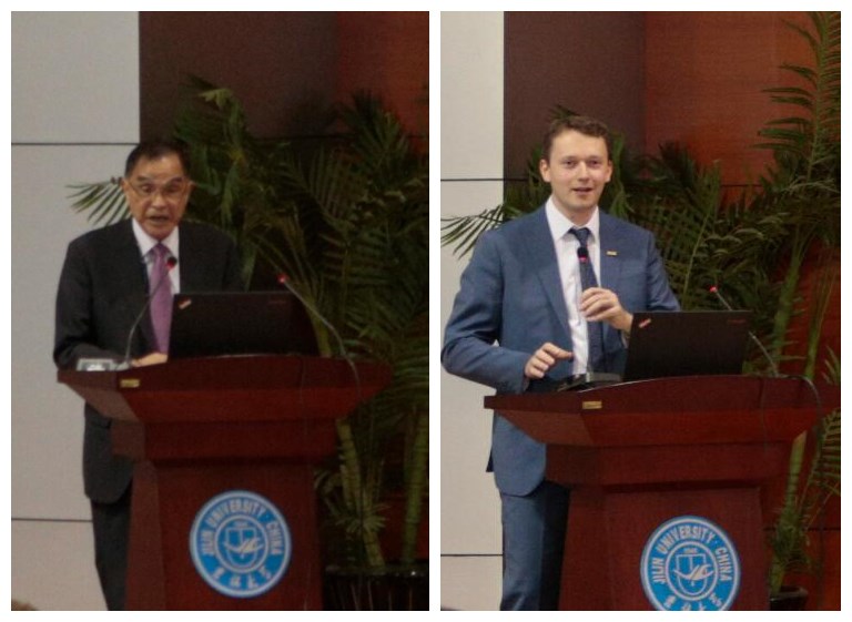 建校70周年校庆之际,学校发展进入了一个历史性的新阶段。而公共外交作为一门新兴学科,面对着大量未知的领域和挑战,希望同学们把握时代脉搏,大胆探索,中外学生相互促进,用所学的知识惠及各国人民。中国学生尤其要树立正确的世界观和人生观,成为具有高尚情操的公共外交专门人才,而不能成为“精致的利己主义者”。冯达旋教授则以《文明的碰撞:“一带一路”对人文交流的意义》为题,阐述了自己对“一带一路”的理解和其对沿线国家间人文交流的重要意义,为同学们上了一堂生动的公共外交课程。巴依科夫教授在致辞中首先对日本三级片
