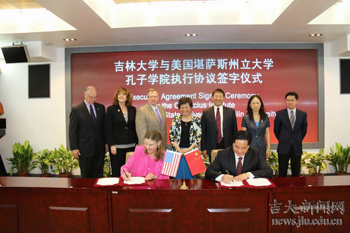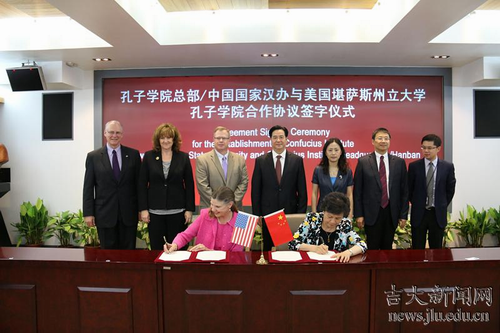 在随后举行的签字仪式上,许琳代表孔子学院总部与美国堪萨斯州立大学教务长兼常务副校长阿普里尔•梅森(April Mason) 签署《中国孔子学院总部与美国堪萨斯州立大学关于合作设立堪萨斯州立大学孔子学院的协议》,李元元代表日本三级片