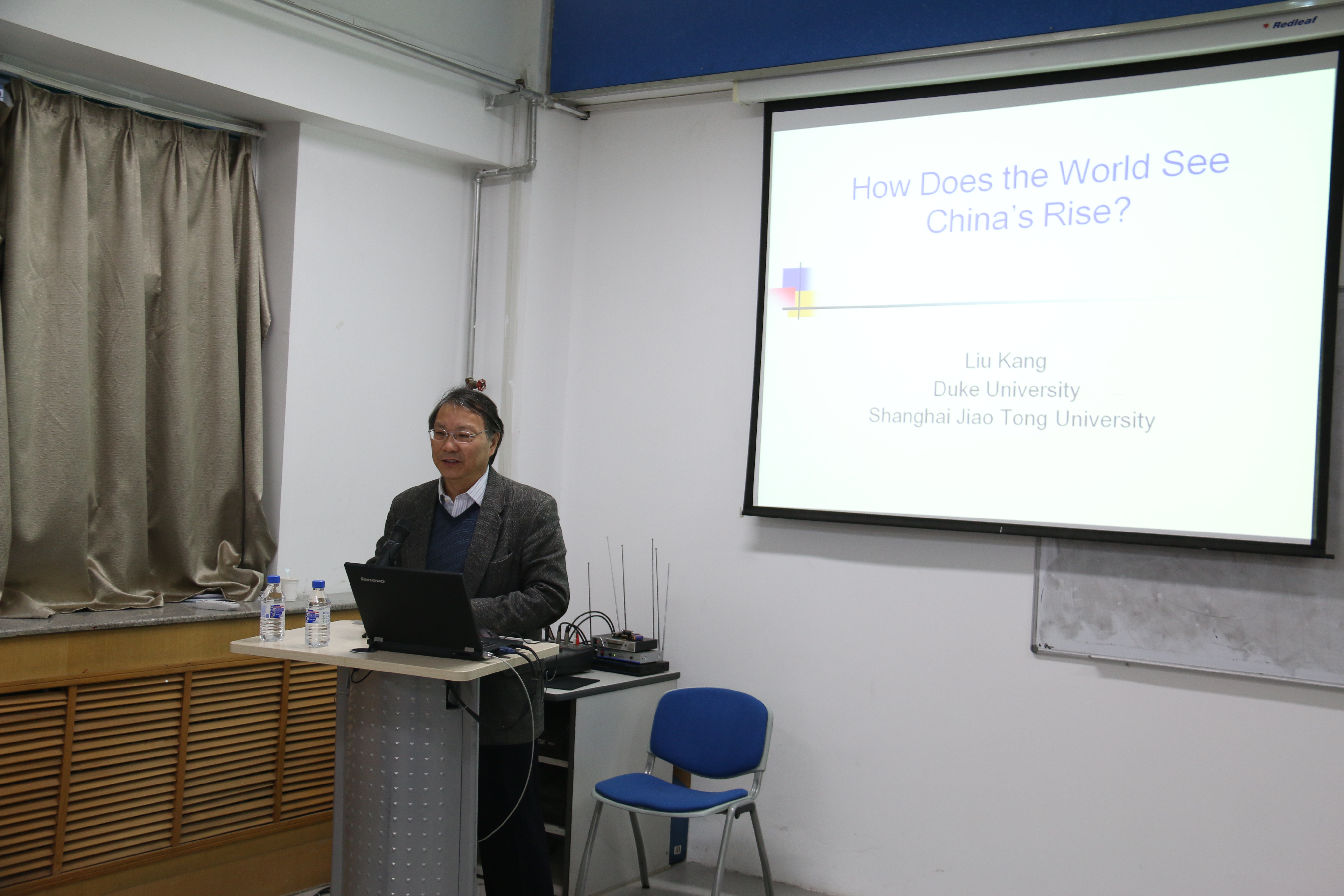 “当代国际关系项目”留学生做了名为“How Does the World See China's Rise”的专题讲座。刘教授在讲座中就中国形象的理论视野进行了界定与阐释,并用丰富而详实的数据与抽样调查结果对有关海外中国形象的几个问题进行了分析。