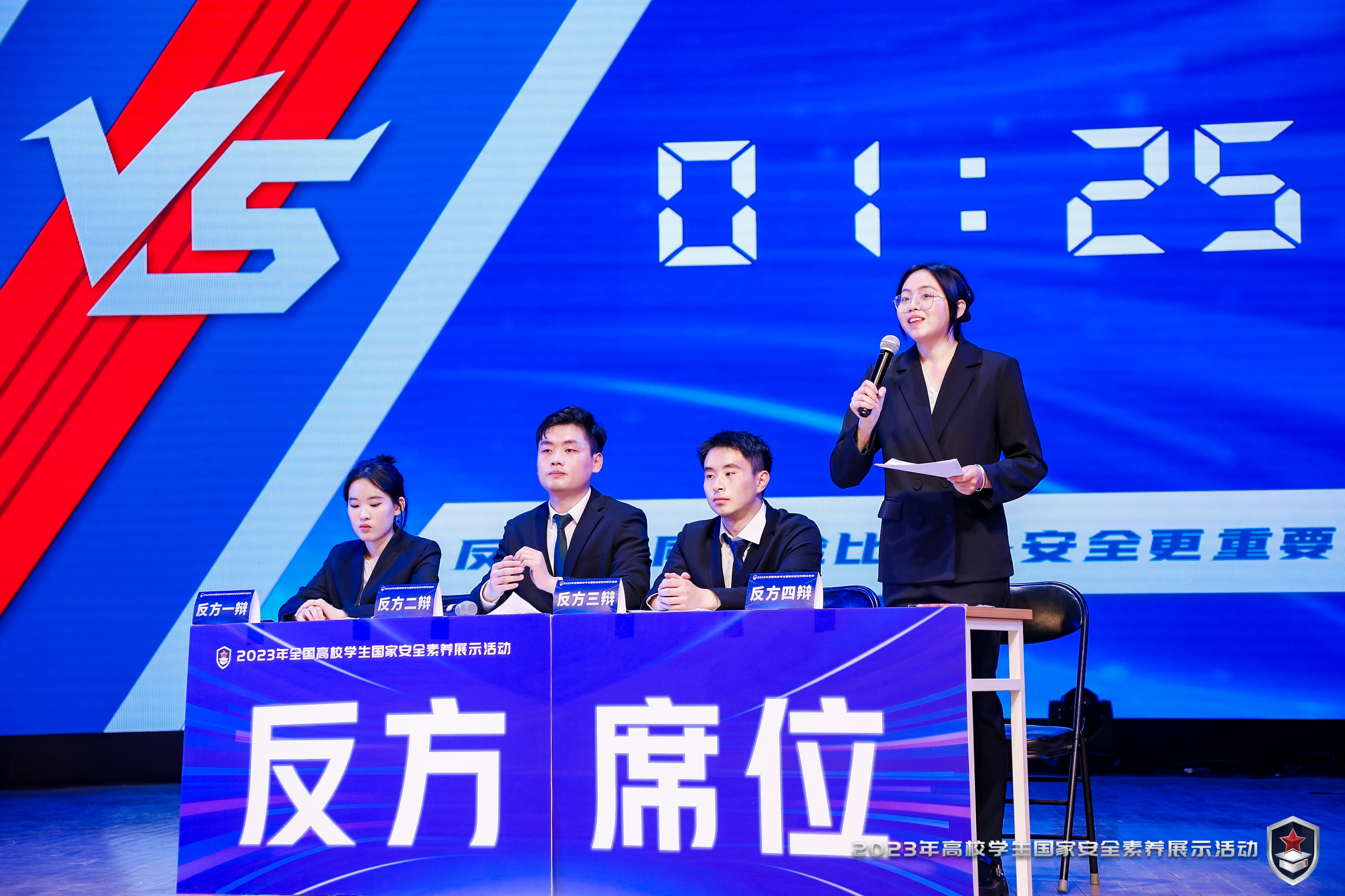 最后,代表队以总分373.6的最高分成功进入终极PK辩论赛环节。经过激烈交锋,队员们对“共同安全比自身安全更重要”这一持方所进行的有理有据的论证征服了大众评审和专家评审,经共同投票,我校代表队以54:9的优势摘得桂冠,荣获2023年全国高校学生国家安全素养展示活动特别风采之星殊荣。