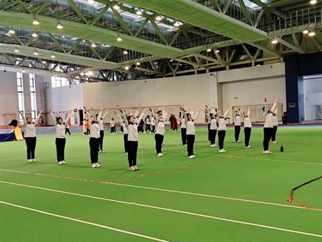 赛场上,参赛队员在领操员孟翔冲的带领下,步伐整齐、配合默契,动作优美流畅、标准规范,充分展现出良好的团队协作精神和高昂的比赛热情,赢得了现场观众的热烈掌声。