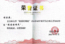学生共计4人次获评“校园好网民”称号,其中1人荣获长春市“校园好网民”荣誉称号。
