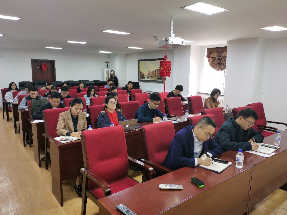 党总支组织全体党员在行政楼二楼参加党史学习教育专题辅导讲座。