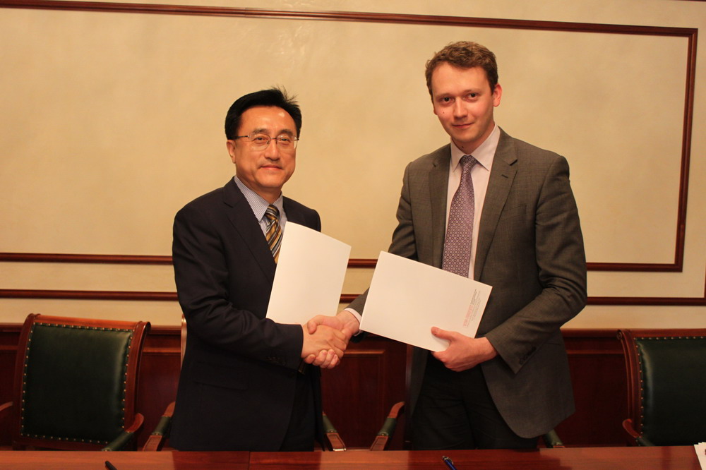5月26日下午,代表团还应邀访问了莫斯科国际关系学院,莫斯科国际关系学院副校长安德列•巴维科夫(Anatoly Torkunov)教授和政治学系主任阿列克谢•沃斯科列先斯基(Aleksey Voskresenskiy)教授等就如何开展双方合作与交流进行了热烈的探讨,并签署了学术合作备忘录。莫斯科国际关系学院官方网站对日本三级片 代表团的到访进行了报道,//mgimo.ru/about/news/main/vstrecha-s-delegatsiey-tszilinskogo-universiteta/