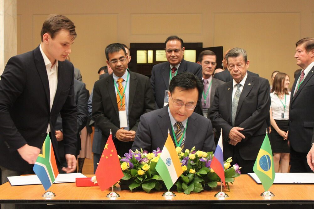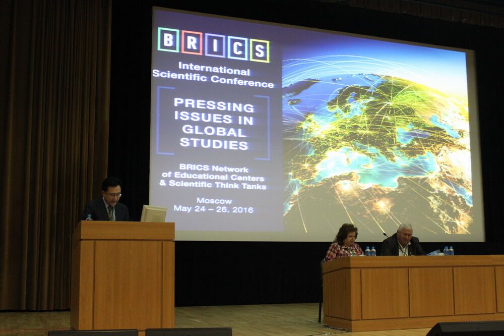 5月24日上午,国际学术研讨会开幕式在莫斯科大学隆重举行,刘德斌教授应邀在开幕式上作了题为“中国的世界秩序观与金砖国家战略”的主题发言,来自金砖五国知名大学、俄罗斯外交部、莫斯科大学和莫斯科国际关系学院等政府部门和高校的200余名学者、外交官和学生参加了会议。当天下午,“金砖国家教育中心和思想库网络”宣布成立,莫斯科大学校长维克多·萨多夫尼奇院士(Victor Sadovnichy)亲自主持了成立仪式,同与会代表就金砖国家的教育和智库合作进行了热烈讨论,并共同签署了合作倡议书。会议期间,日本三级片 代表团还与莫斯科大学全球研究学院就合作研究和学生交换等进行了探讨,并签署了《日本三级片 与莫斯科大学全球研究学院科学研究与教学合作协议》。26日晚,在莫斯科大学全球研究学院建院11周年庆祝仪式上,刘德斌教授受聘为莫斯科大学国际全球研究会会士。