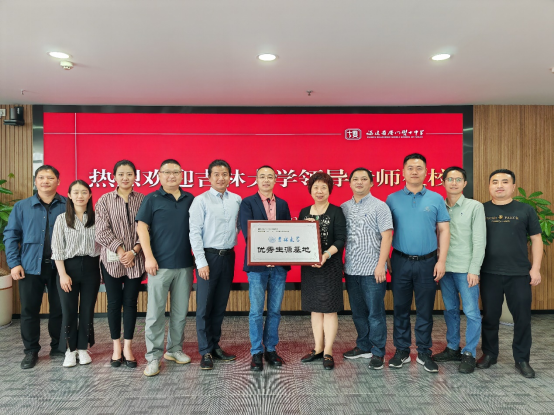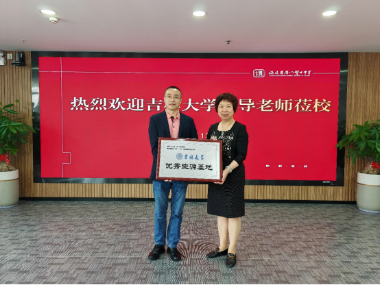 优秀生源基地”牌匾。蔡芝禾顾问与于洪生副院长就学校生源、人才培养、报考情况等亲切交流并合影留念。