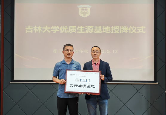 招生团组一行四人赴厦门市外国语学校海沧校区开展本科生招生宣传活动暨优秀生源基地授牌仪式。福建省专家联谊会副秘书长,福建省国际人才交流协会监事长余金怀,厦门校友会副秘书长程林随行。活动在学校会议室进行,教务处胡靖华,德育处邱洪斌及高三骨干教师出席。