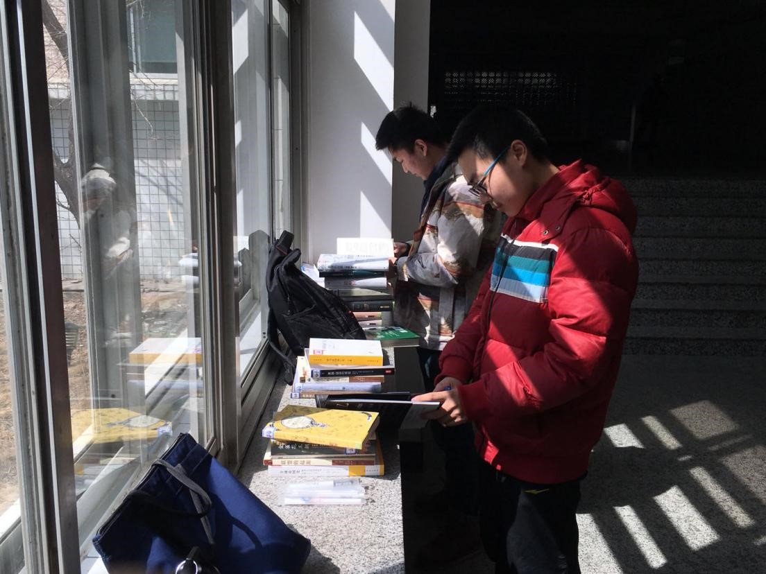 于每周一定时举办图书漂流活动。4月9日,沐浴着春日温暖的阳光,同学们走到逸夫楼一楼的借书处,借阅学院给同学们提供的书籍。其中,最先借书的五位同学还获得了学院提供的笔作为小礼品。