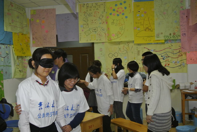 活动一开始,朋辈心理辅导员带领同学们进行了一分钟鼓掌体验,启发同学们要正确认识现实中的大学生活与预期的差异:我们每个人对自己的大学生活都有着这样或那样的预期和设想,但来到大学校园之后,你会发现设想和现实之间是有差别的,有时候差别还很大。要正确认识这种差别,为自己的大学生活设计一个合理的预期,并通过自己的努力去实现。接着,通过“无家可归”和“温柔体操”两个活动,大家认识到了团队的重要性,随之而来的“信任之旅”和“集体登陆”等阶段不仅活跃了现场气氛也检验了团队的协作能力。其中,同学们对“信任之旅”的印象最深,通过扮演盲人被人引导通过障碍物,大家深切感受到了合作的重要性。最后,本次心理辅导课在大家共同绘出团体树和在院旗下合影留念中圆满结束。