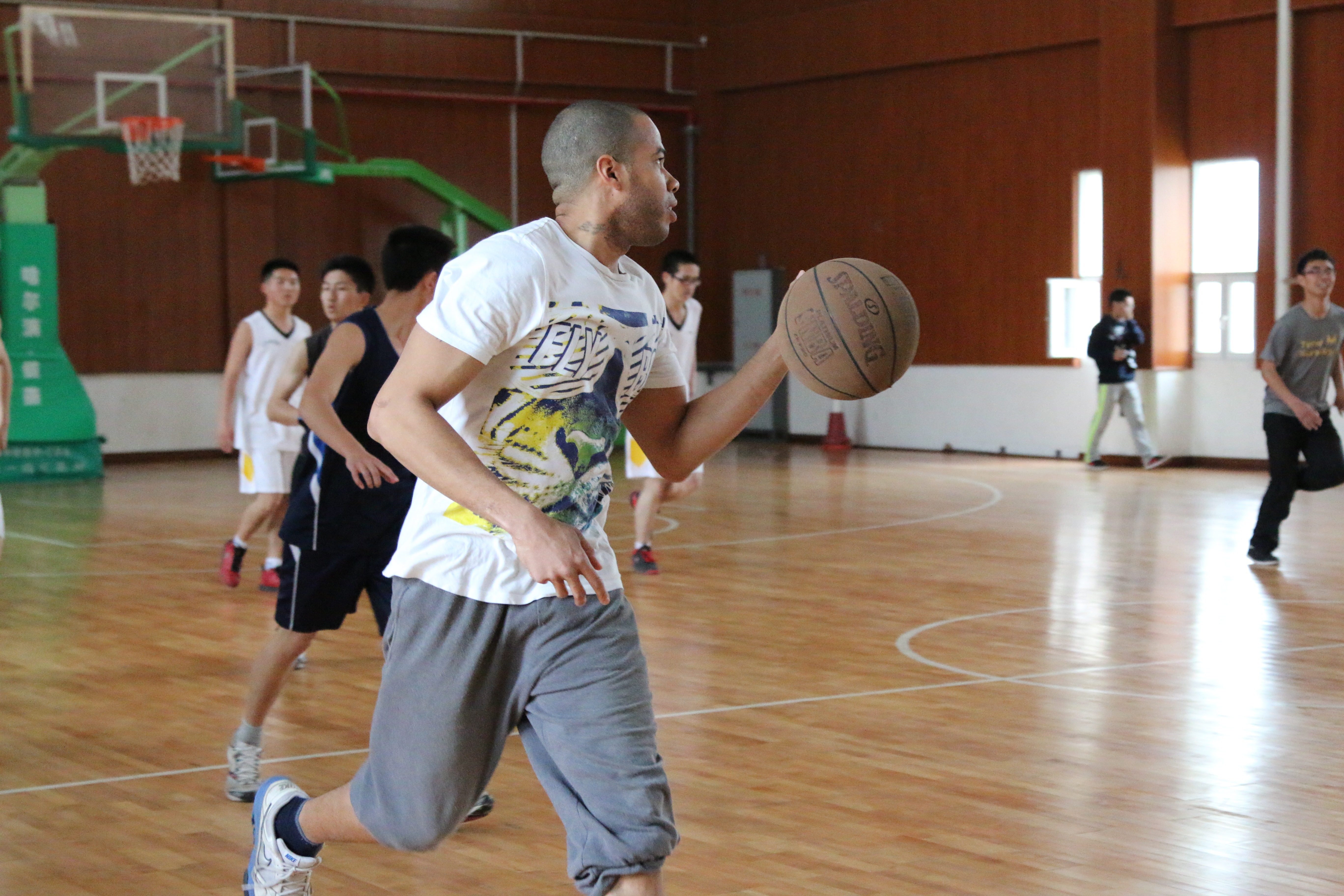 与金融学院的篮球友谊赛在我校基础园体育馆如火如荼地进行。双方运动健儿们都积极投入比赛,在球场上上演了你追我赶的得分大战。而在场边助威呐喊的啦啦队员们也激动万分,为每一个进球欢呼喝彩。