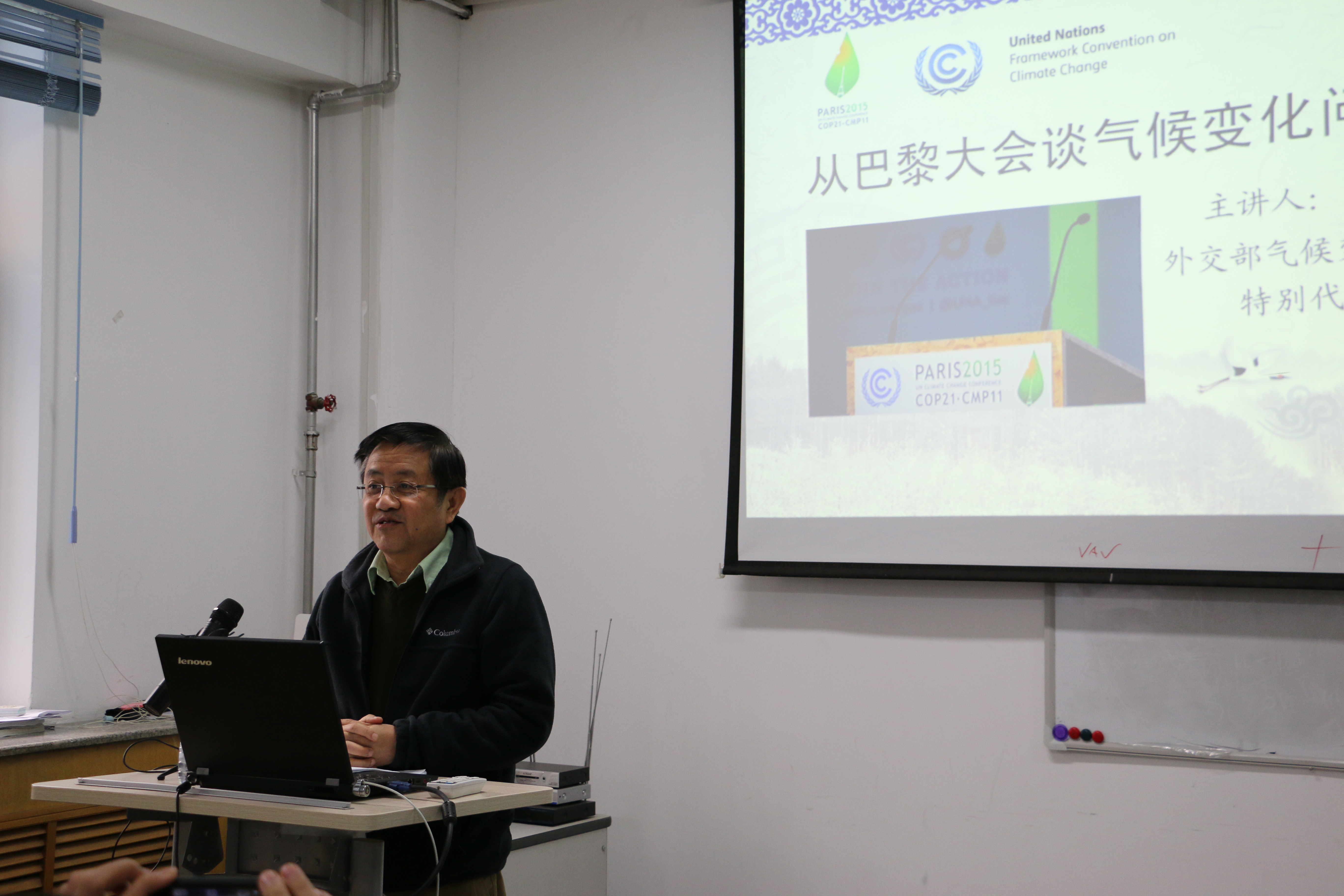 于友谊会馆小报告厅开展第二次大学生职业发展与创业就业指导系列讲座。本场讲座由资深外交官、我国外交部气候变化特别谈判代表高风担任主讲人。本场讲座将气候问题置于全球治理的框架下,通过气候问题在国内外的影响力,加深同学们对气候问题的了解。