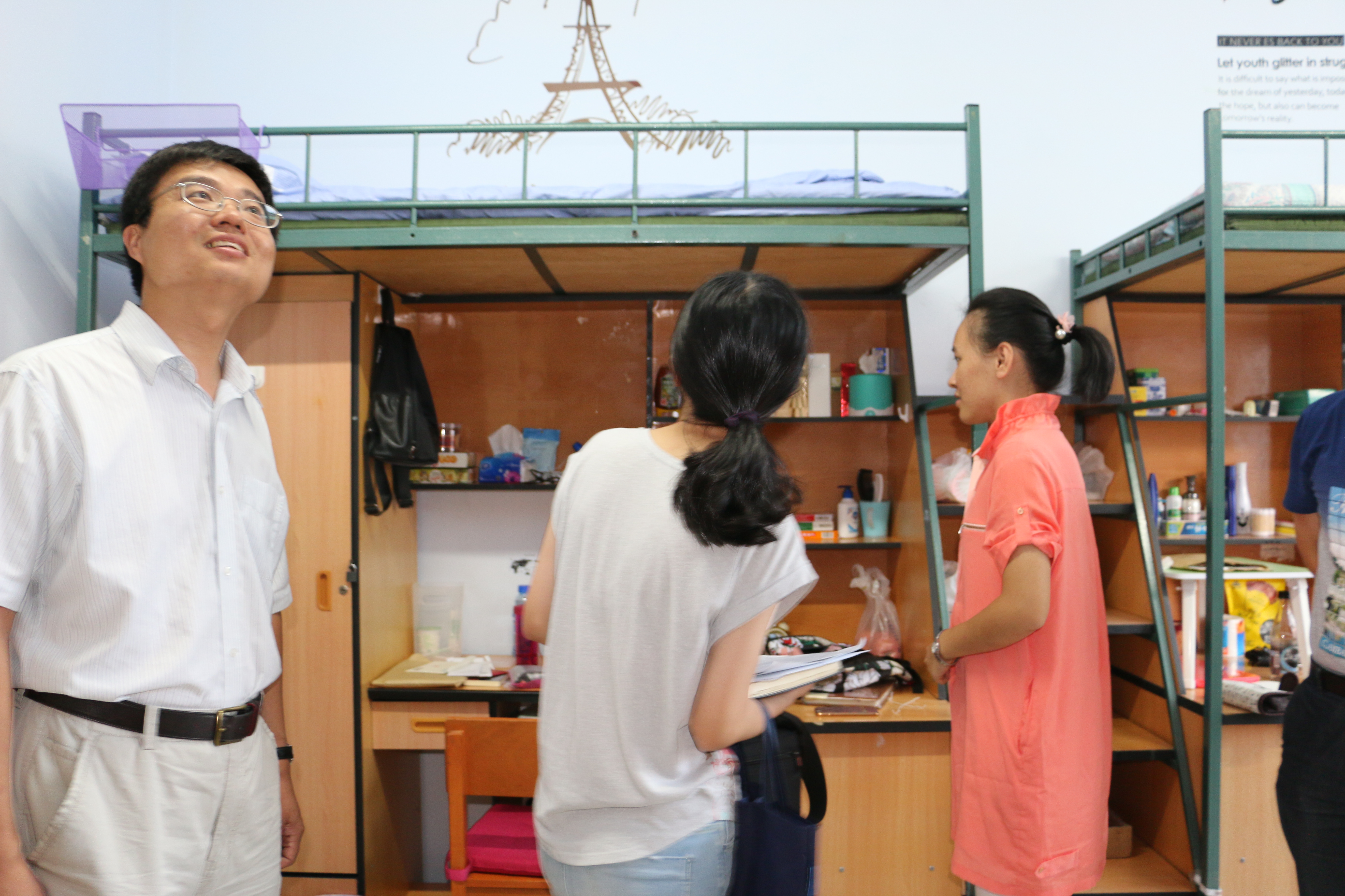 为了解新生情况、帮助新生尽快适应大学生活,两位老师先后走访了大学城二、三公寓的新生寝室,与新生们进行了亲切交谈,仔细询问学生进校后的感受,饮食、住宿等生活情况,鼓励新生逐步提高自理、自立的能力,希望新生们以积极的心态和良好的面貌尽快适应大学校园生活,并强调了宿舍用电安全、外出交通安全、人身财产安全等。