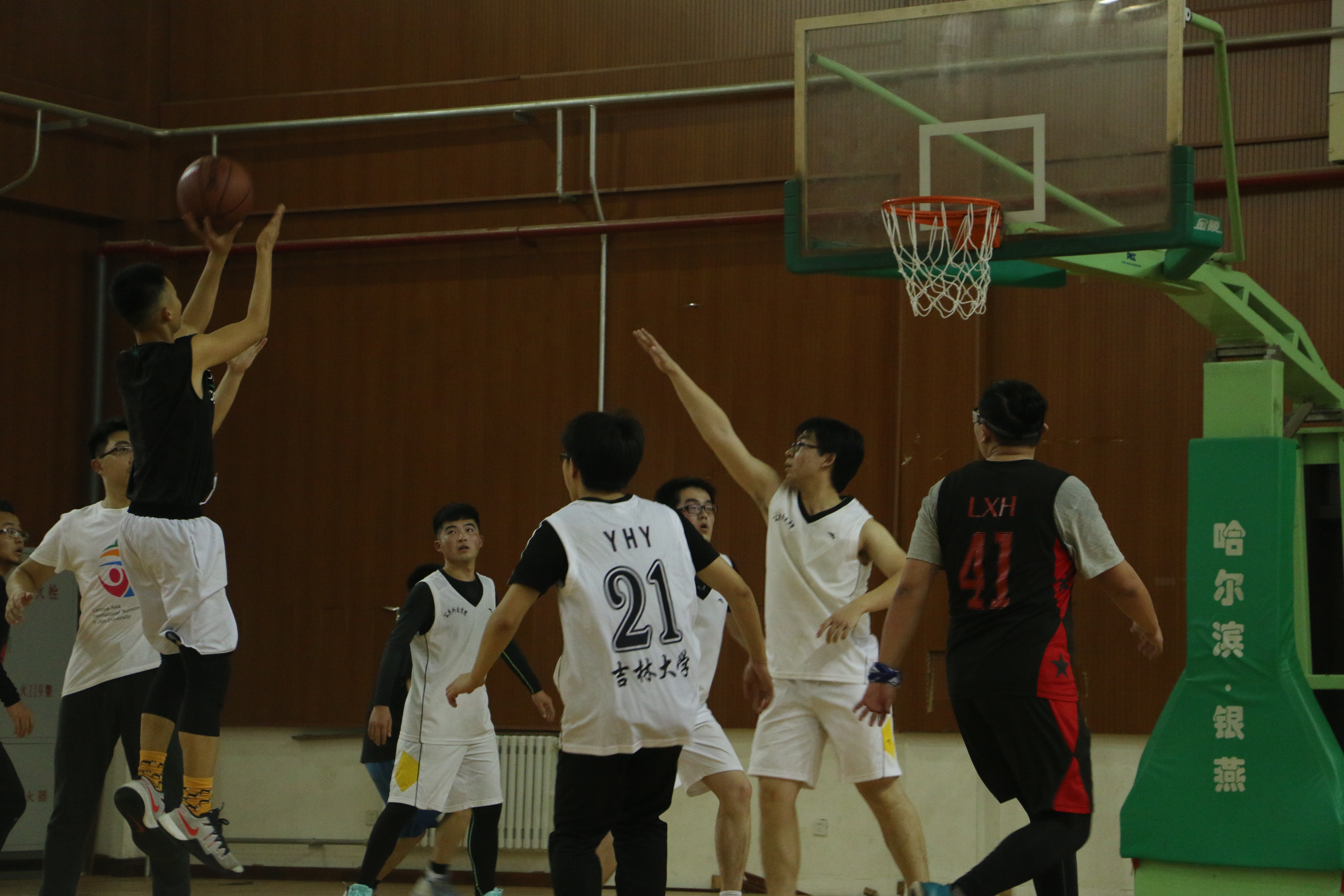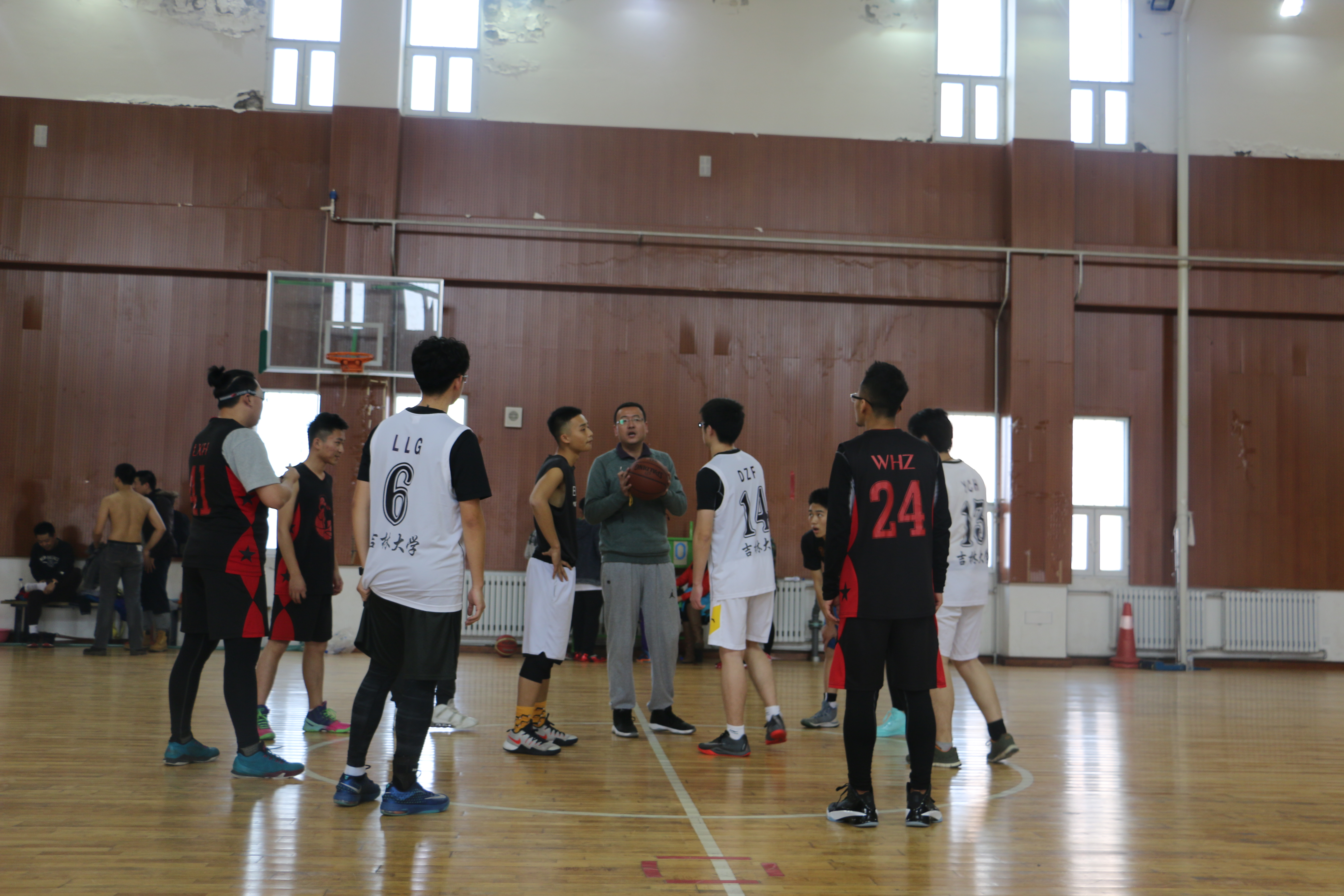 于北苑体育馆举办2016届新生杯篮球赛,由大一、大二联队对阵大三、教师联队。
