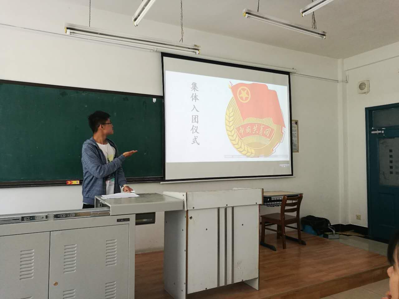16级团支部于经信教学楼109教室开展了“不忘初心跟党走”重温入团仪式活动。此次活动也是纪念五四运动98周年和庆祝建团95周年系列活动的重要部分。