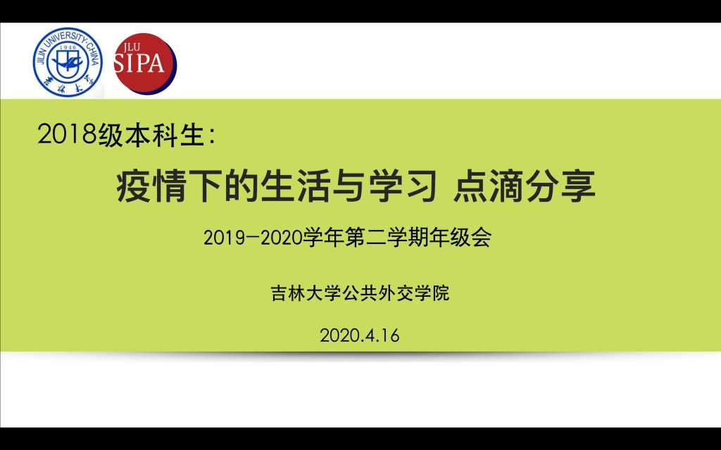 2018级全体本科生通过网络平台召开了“疫情下生活与学习分享会”为主题的线上年级会。本次年级会由2018级本科生石韵章主持,辅导员王力老师、2018级班主任任慕老师、邹晓龙老师参加了本次的年级会。