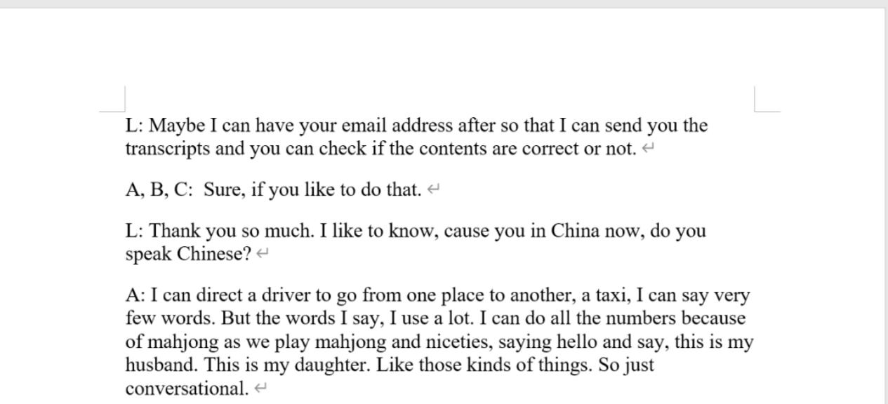 7月22日,在华漕中外友谊促进会的帮助下,团队成功与来自加拿大、瑞士和俄罗斯三个国家的外国友人进行了线上访谈。访谈对象对在中国的生活幸福感以及社群的认同感、融入度都给予了较高评价;且防疫期间的措施在保证阻断隔离效果的情况下尽可能地提高了人性化服务程度,尊重了国际友人的生活习惯与文化习俗,得到了外国友人的一致好评。