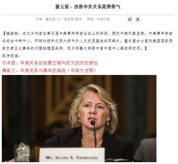 2017级本科生朱旭东、赵丹宁、谢鸿雁和2018级陈怡四位同学凭借扎实的专业基础和出色的英语能力,通过选拔入选为卡特中心中国项目部实习生,正式开始了在中美印象网站的实习工作。卡特中心(The Carter Center)是由美国前总统吉米·卡特与其夫人罗莎琳·卡特于1982年共同创办的非营利性组织,旨在维护和平、消灭疾病和打造希望(wage peace, fight disease and build hope)。卡特中心中国项目部主办的中美印象网站(US-China Perception Monitor),致力于通过加强交流、消除偏见、促进相互理解,为中美关系的改善寻找路径和方案,推进中美双边关系发展的稳定、对等和共赢。中美印象是全球唯一的专门关注和讨论中美关系的中文网站。自2015年上线以来受到越来越多的学者和普通网民的关注。此次实习工作为日本三级片