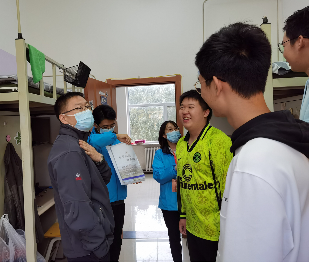 党总支书记杨民、辅导员王力、张淑艳、高梦鸽四位老师对2020级新生寝室进行了走访,为新生送去了学院的问候与关心。