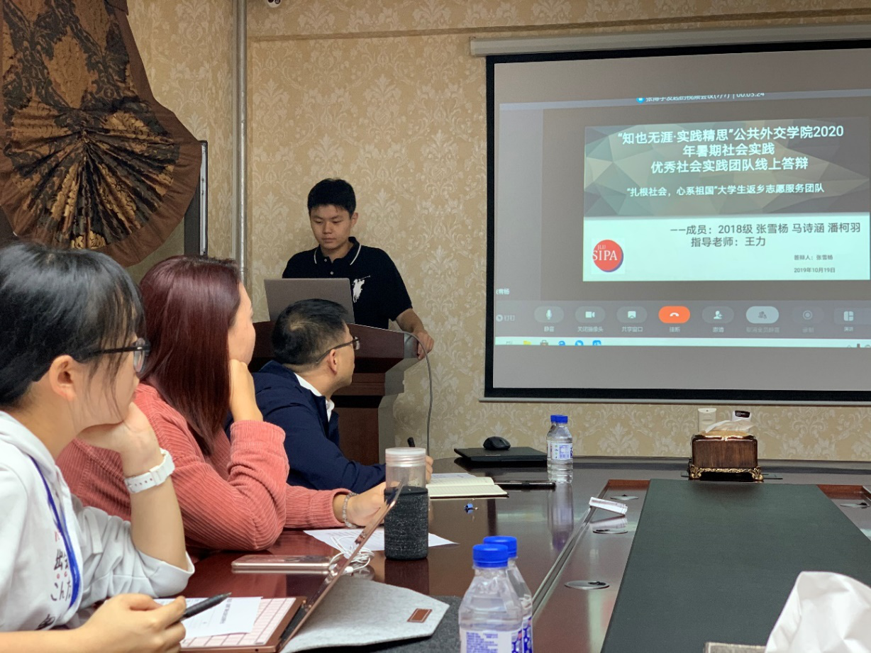 团委组织开展了暑期社会实践评比活动。此次活动结合疫情实际情况,采用线上线下相结合的方式。活动由学院团委组织建设部负责人张博宇同学主持,评审小组由学院党总支书记杨民老师、学生工作办公室主任王力老师、院团委书记张淑艳老师以及各年级团支书组成。