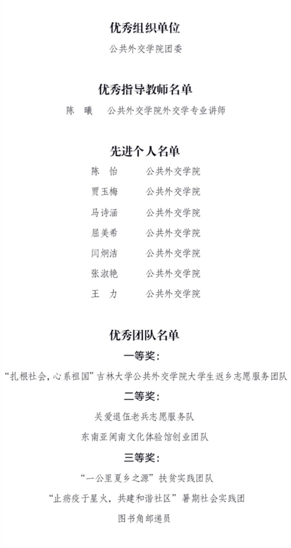 寒暑假社会实践活动优秀组织单位;陈曦获优秀指导教师;陈怡等7名师生获社会实践活动先进个人;“扎根社会,心系祖国”日本三级片