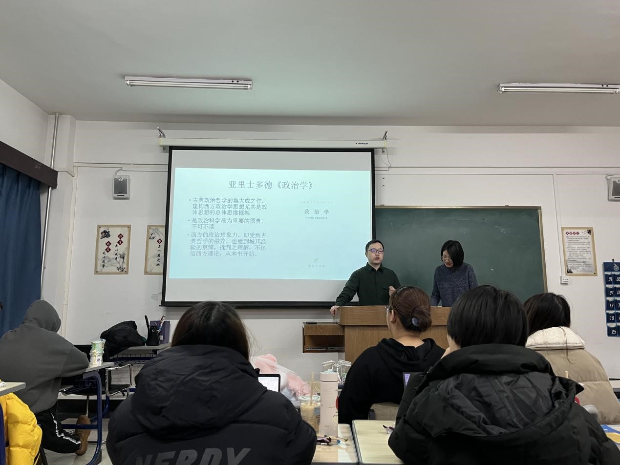 接着,颜震老师和崔悦老师为大家推荐了假期阅读书目,并介绍了专业书籍的高效阅读方法。从亚里士多德的《政治学》,小约瑟夫·奈的《理解全球冲突与合作》到秦亚青的《权力·制度·文化》,颜震老师推荐同学们广泛涉猎,多多接触不同类型的作品。崔悦老师推荐了《美国简史》以及《近距离看美国》两本书。对于专业文献的阅读技巧,颜震老师提到,首先要具备的是“问题意识”,兴趣是开启阅读的首要且必要的条件,带着问题读书,才能将问题变为驱动力,促进学术研究;其次是用批判性、框架性思维阅读。在此,崔悦老师推荐了“XMIND”“幕布”等思维导图工具。最后,两位老师就专业外语的学习也给出了一些真知灼见,鼓励同学们拓展学习渠道,充分利用资源,积极自主学习。