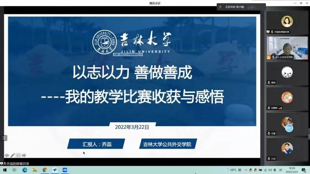 会议同时邀请超星杯第二届吉林省本科高校智慧课堂教学创新大赛一等奖获得者乔蕊进行了参赛经验分享。乔蕊老师从参赛契机、前期准备、比赛实践和教学反思等方面进行了经验传递,为学院教师参与教学比赛和提高授课质量提供了有益建议。