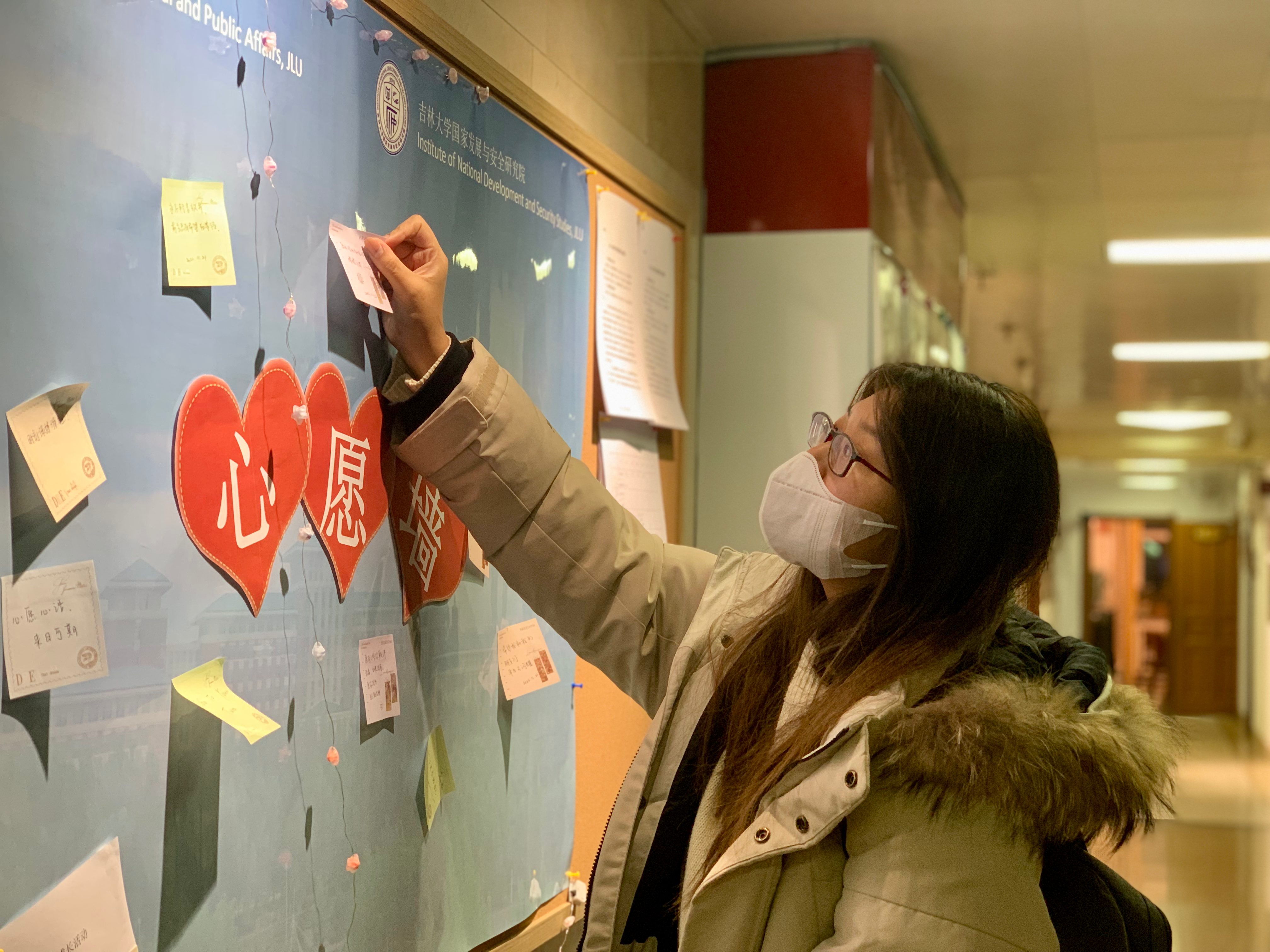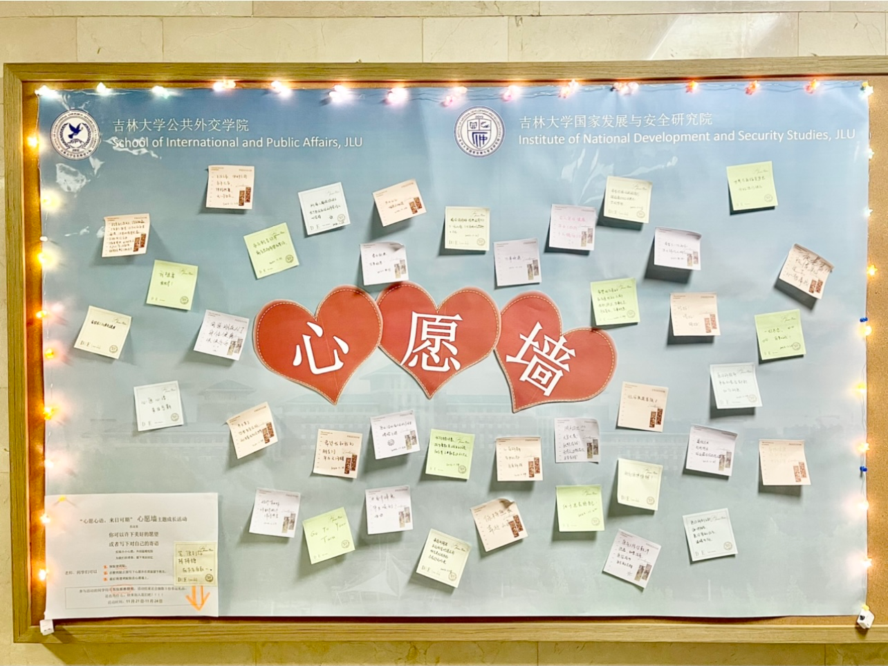 、国家发展与安全研究院于吕振羽楼二楼开展了“心愿心语,来日可期”心愿墙主题成长活动。