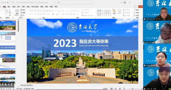 21级本科生曾静同其他学院的三名同学共同组成了“与吉大同行,遇东坡学子”四川省眉山市返校宣讲团队。2023年1月10日至11日,曾静同学来到四川省眉山中学校参与线下宣传工作,2023年1月17日,曾静同学和三名团队成员通过腾讯会议平台开展“四校联合宣讲”活动。认真负责的态度、细致的介绍讲解以及丰富精彩的在校生活分享激发了学弟学妹们对吉大的热情,搭建起了吉大与四川学子的桥梁,成功扩大了吉大在四川学子中的影响力。