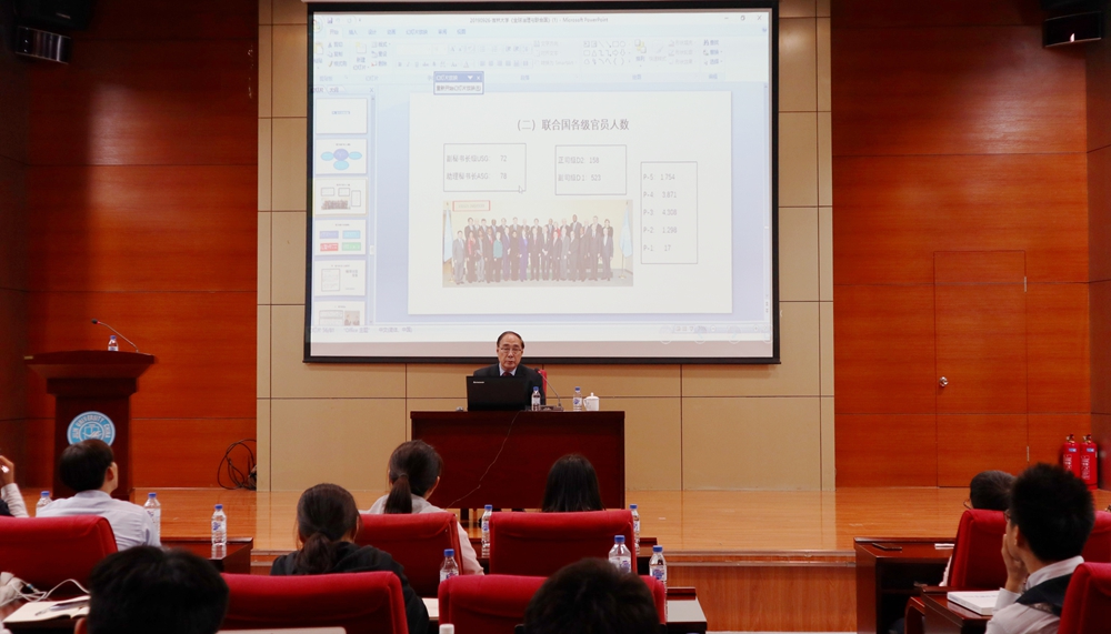 为主动服务国家发展战略,提高同学们的外交外事能力和国际视野,926日,联合国前副秘书长、原中国驻德意志联邦共和国特命全权大使、中国国际公共关系协会会长吴红波先生受邀来到日本三级片 ,以“全球治理与联合国”为题,为同学们带来一场精彩报告。报告会由日本三级片 院长肖主持。