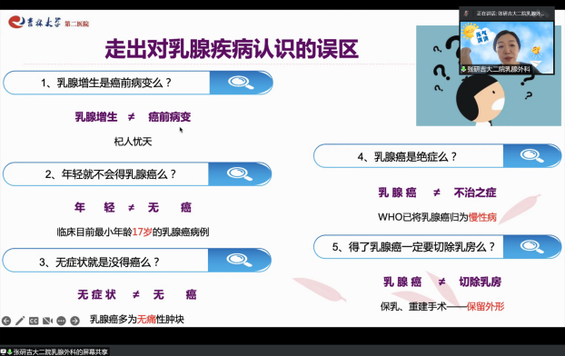 第二医院乳腺外科副主任张研教授作为主讲嘉宾为大家讲解女性健康相关知识。